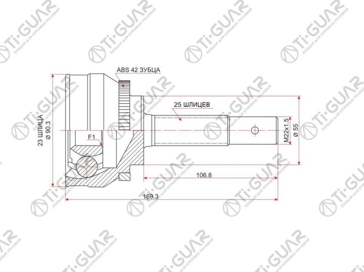 ШРУС наружный /передний левый /правый /TI-GUAR для Nissan AD California Sunny Pulsar 1990-1996 Y10 B13 B14 N14 N15; 23*55*25; TG-7417Z42; NI017 NI017A42 0210017