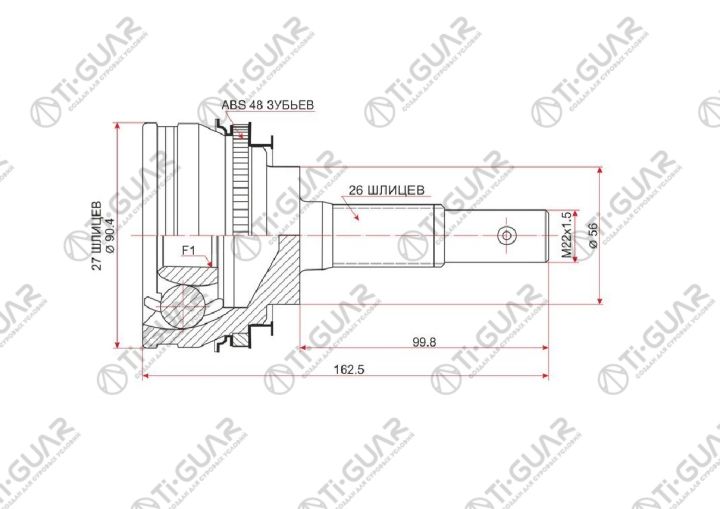 ШРУС наружный /TI-GUAR для Toyota Camry Vista 20 30 Celica 1989-1993 ED 3SFE; 27*56*26; TG-9512Z48; (TO-E012A TO-012A48 TGCVJ0021) 4341020680 CO7511A 0110012A48